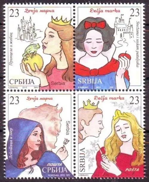 The 2015 “Children’s Stamps” (Dečja Pošta) issue from Serbia was dedicated to a charitable cause, as is traditional for this annual series, and the theme was centered around children’s art and creative expression.